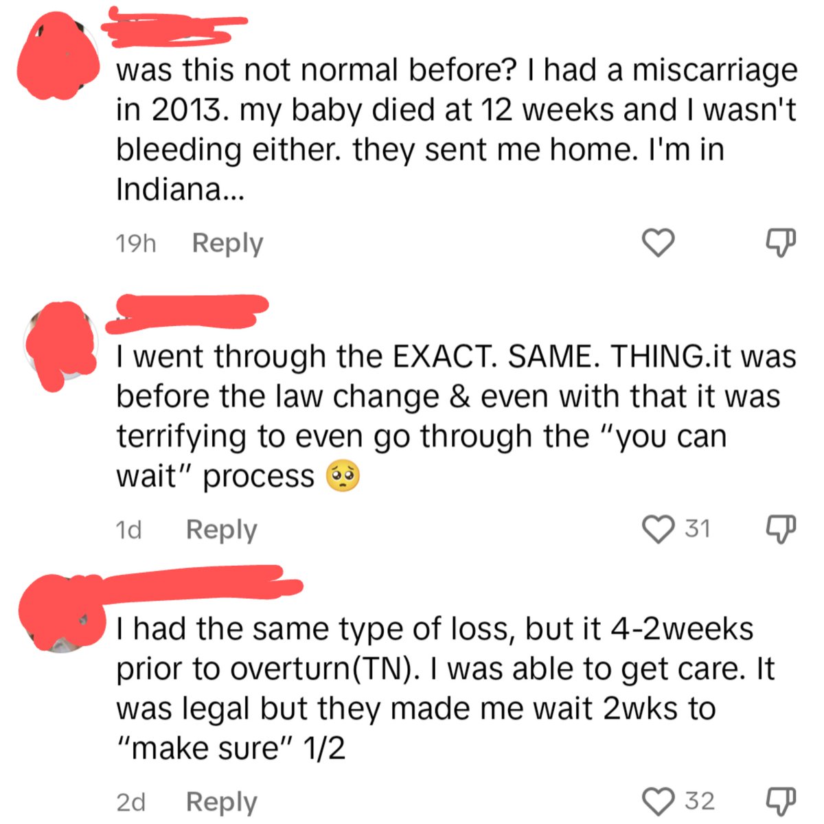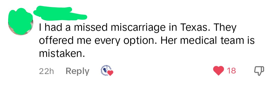 The fact of a doctor suggesting waiting before treatment for missed miscarriage doesn't mean they're afraid of abortion laws (that don't prohibit this treatment to begin with). 9/