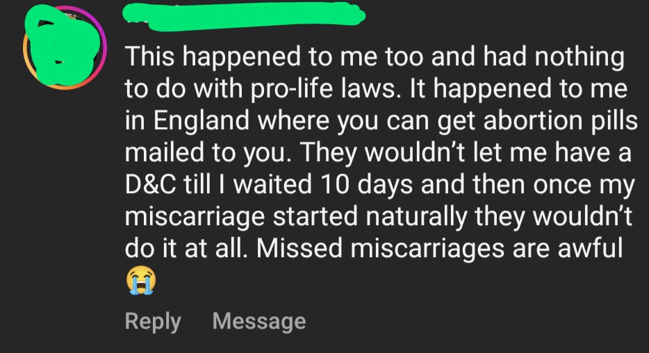 Similarly women in other places with abortion restrictions are getting missed miscarriage care. 8/