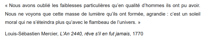serait un état nécessairement inférieur au présent, dont l’Europe «éclairée» serait la grande représentante. De cette idée en découle une autre : face au présent, le futur peut être encore bien meilleur, radieux, utopique. 15/25