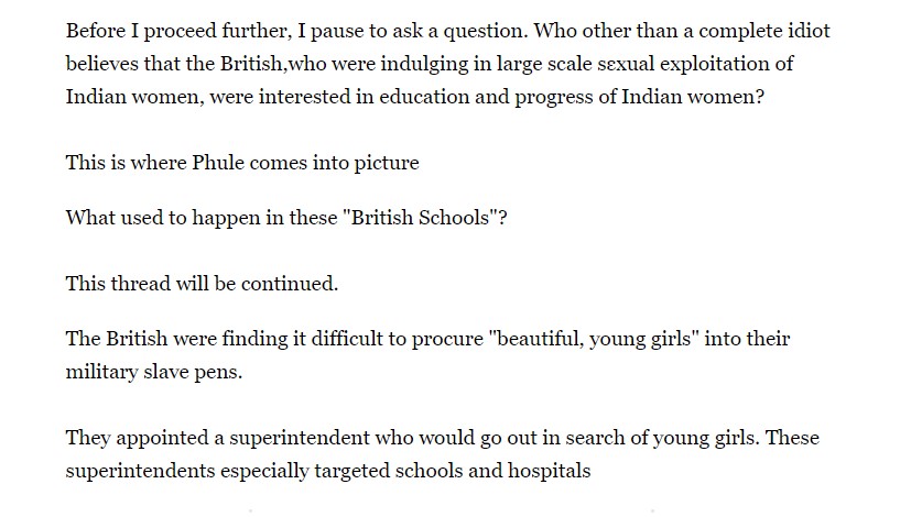 TI said Britishers were away from family in India and they had sexual needs and for that they used to abduct Indian girls and used to use them as sex slave and here Phule comes in picture