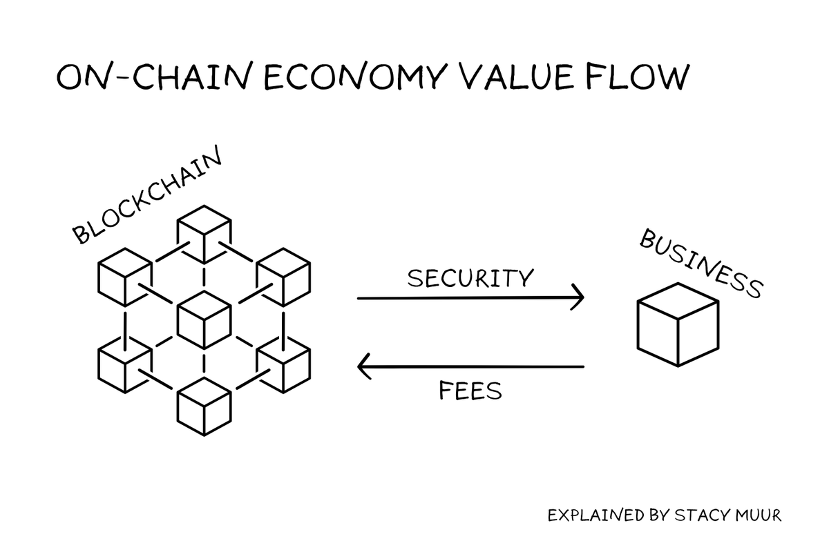 The modern on-chain economy can be described as follows: The blockchain provides trust to DApps and, in return, receives fees.
