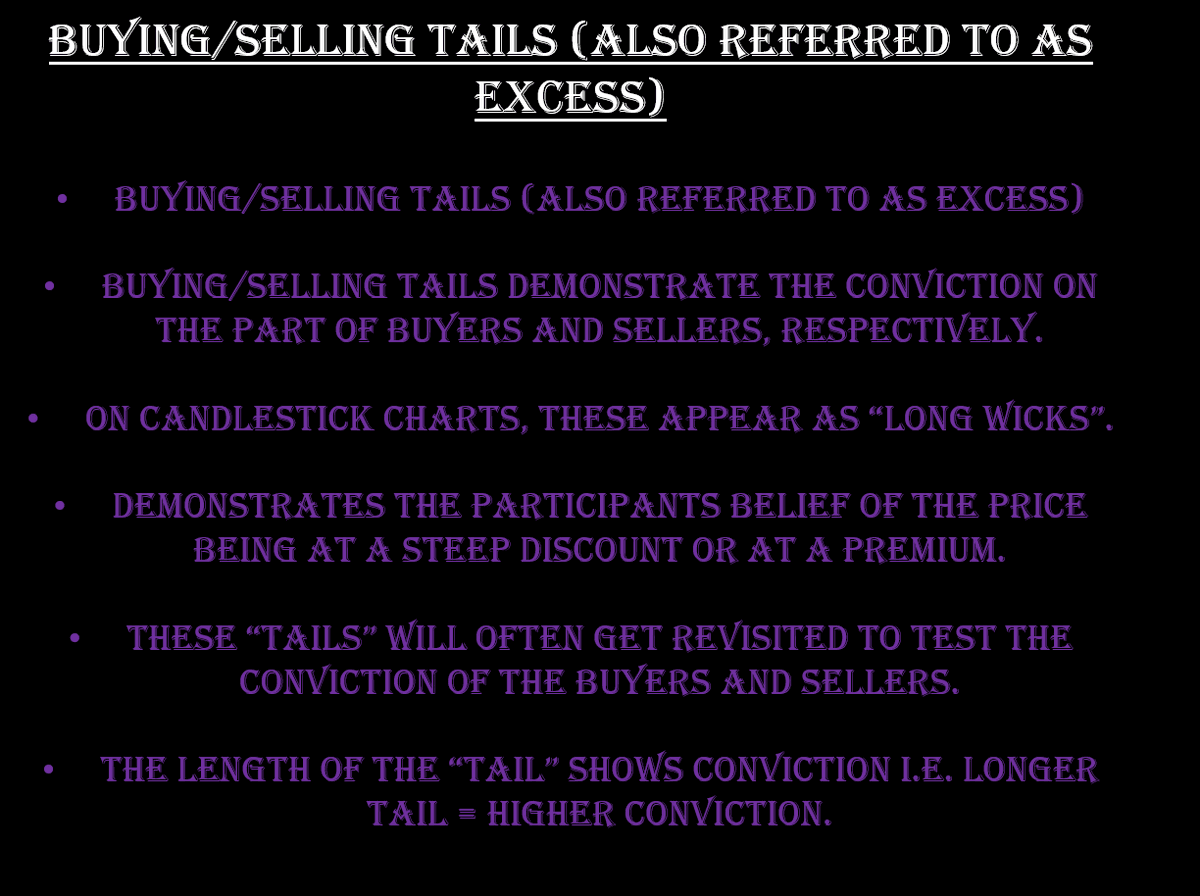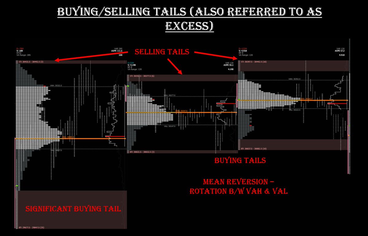 Can be used to play reversals (in conjunction w/ utilizing orderflow via footprint charts) especially if the buy/sell tail is falling into significant levels such as untested PoC (naked PoC), key support/resistance levels etc (see images for details).
