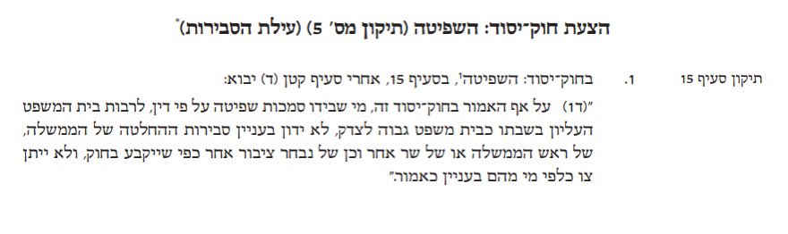 בכנסת ישראל ממשיך הדיון לקראת ההצבעה בקריאה שנייה ושלישית של מה שמכונה "החוק לצמצום עילת הסבירות", שמבחינה משפטית הוא בעצם תיקון לחוק יסוד: השפיטה.