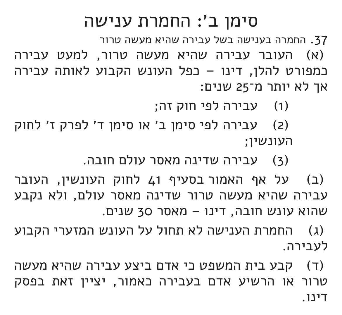 הנה סעיף 37 לחוק המאבק בטרור👇.