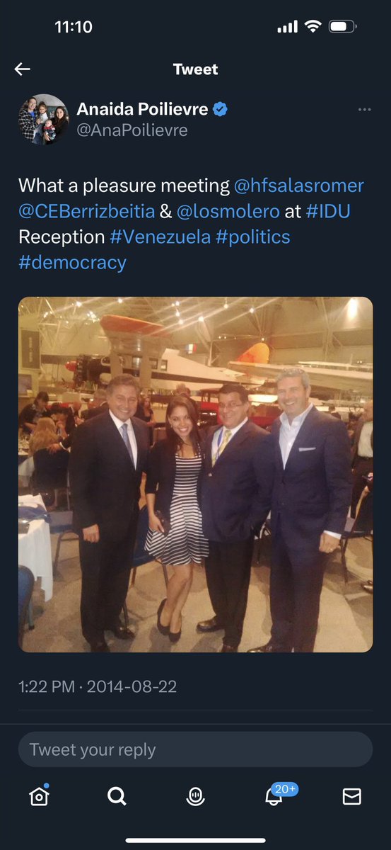 11 We already know that Anaida Galindo was meeting with IDU members in Venezuela on Aug. 8, 2014 before she married PierrePoilievre in 2018, Stephen Harper is the chair of the IDU, which helps fascists get elected around the world. The connection is clear.