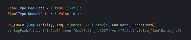 Additionally you can provide custom serialization for any type. There's really no excuse to still use the clunky ol' UE_LOG!
