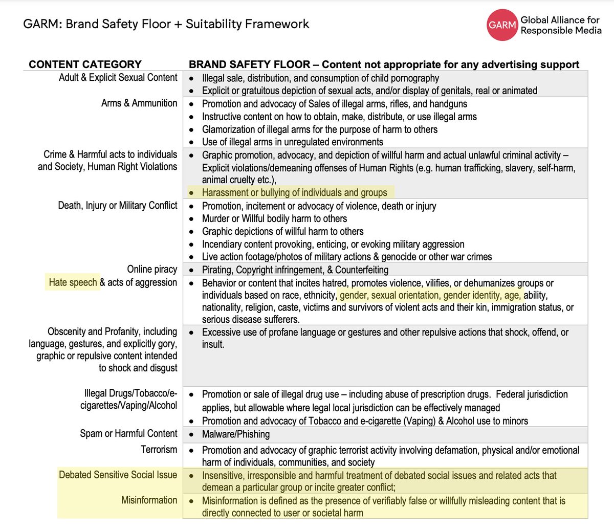 3/ GARM is an unholy alliance between huge advertisers and social media companies like Google’s YouTube, China’s TikTok, Meta’s Facebook & Instagram, and even Twitter/X and Snapchat. GARM developed something they call the “brand safety floor & suitability framework.”