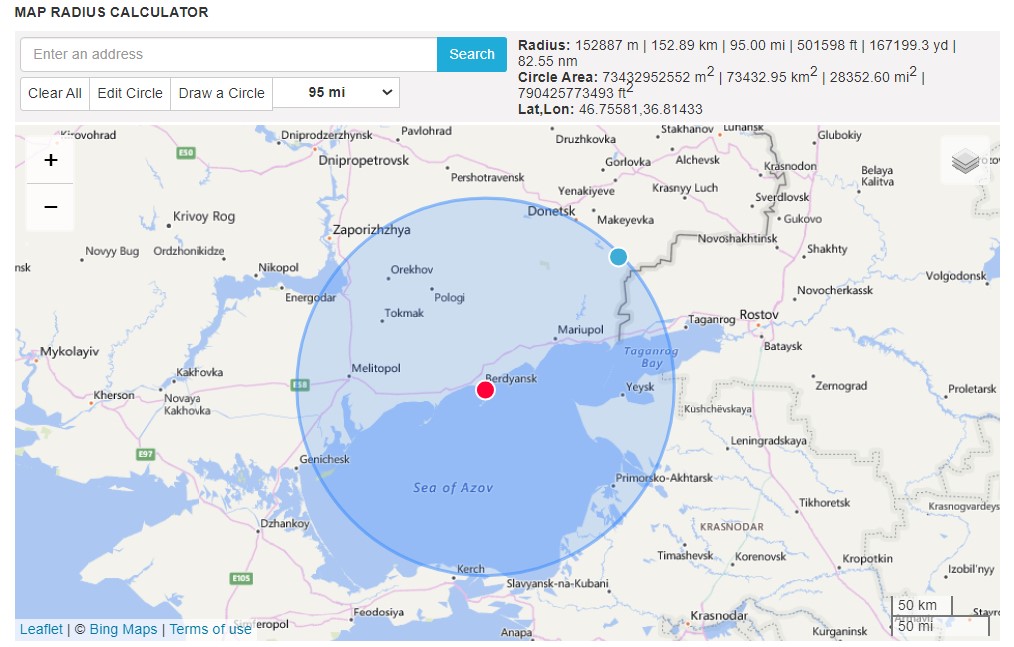 This is what that 150 km truck radius of action look like on a map of Southern Crimea from Chongar.