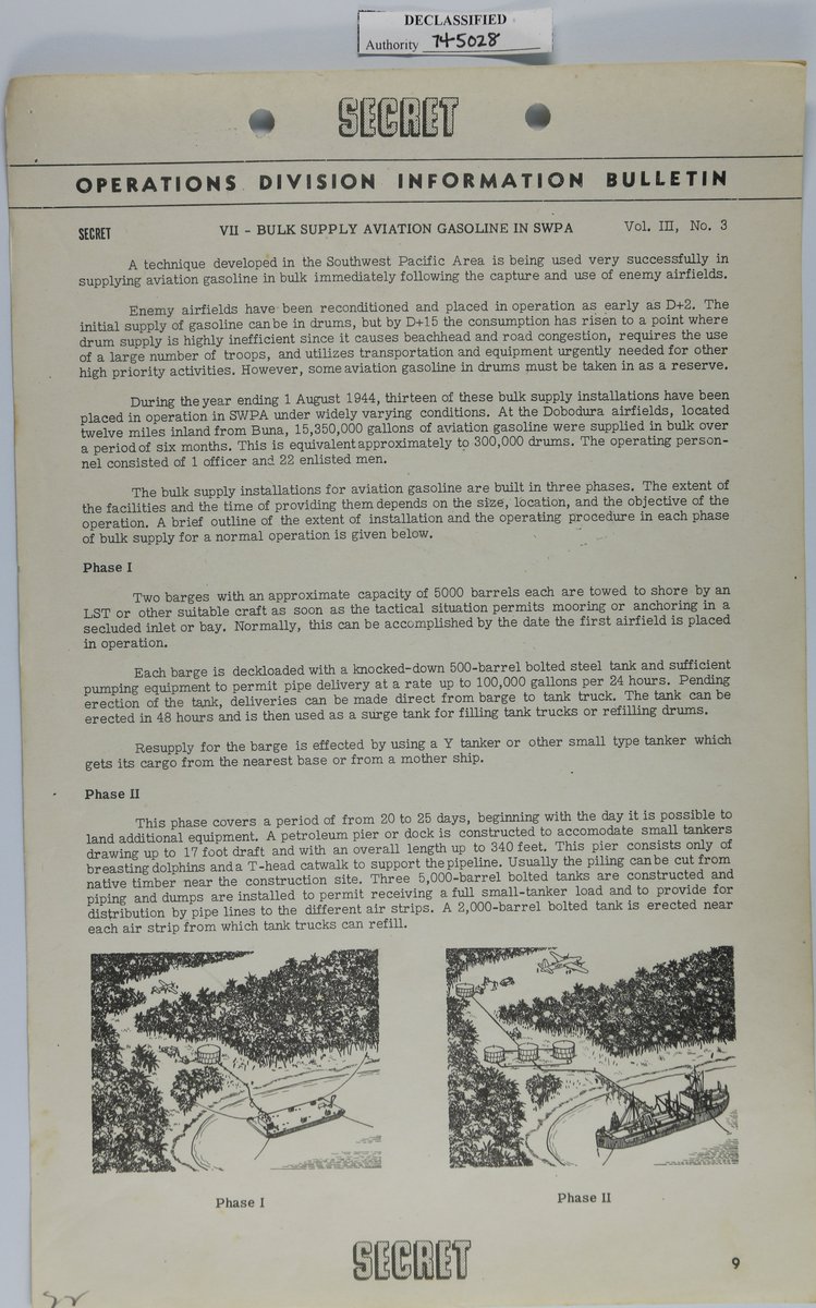 MacArthur's air bases in the Southwest Pacific made extensive use of barges for the bulk supply of fuel.