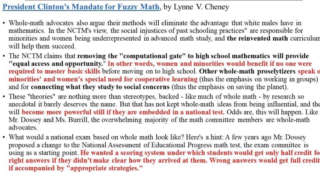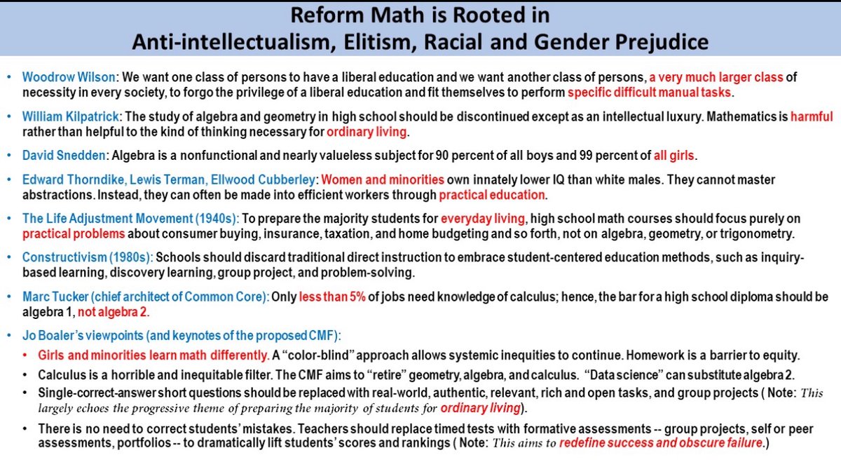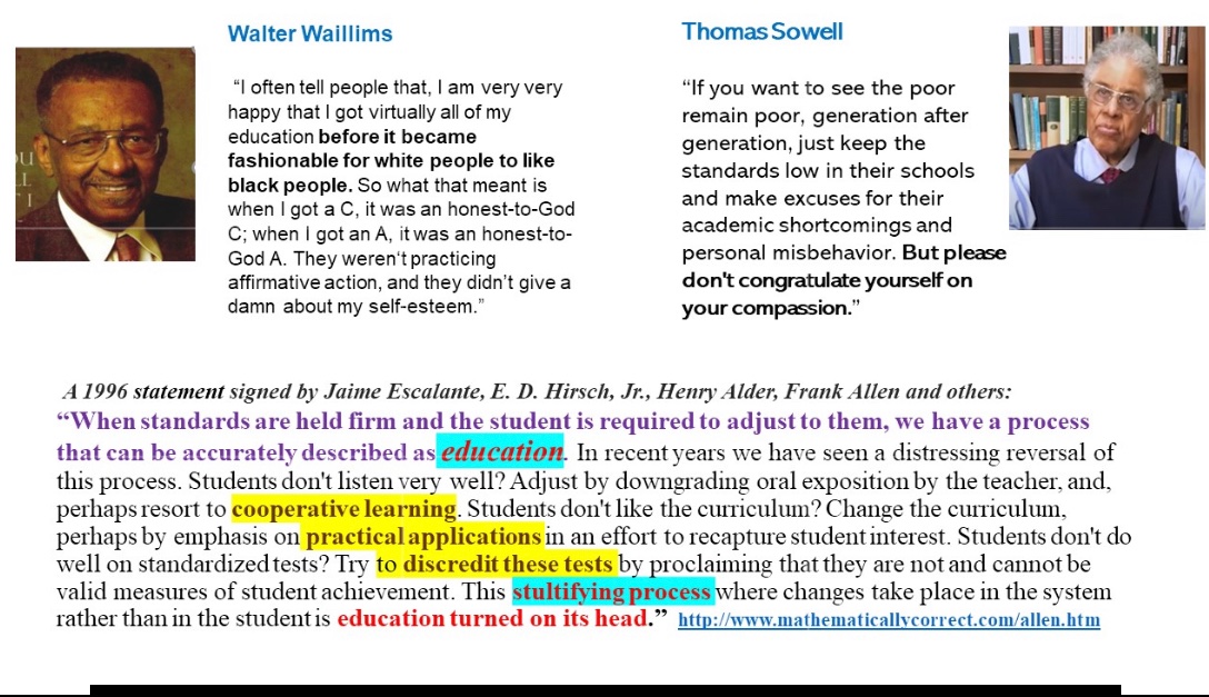 The rabid pushers of critical pedagogy desire the dismantlement of discomfort, rigor, and merit in education, openly claim women and minority students learn math differently: These “revolutionaries”are both racists and misogynists.