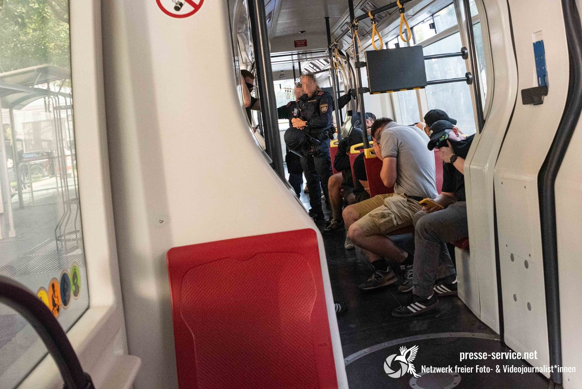Nach etwa einer halben Stunde wurden die Angehaltenen von der Polizei in eine Straßenbahn begleitet und so aus der Innenstadt eskortiert.