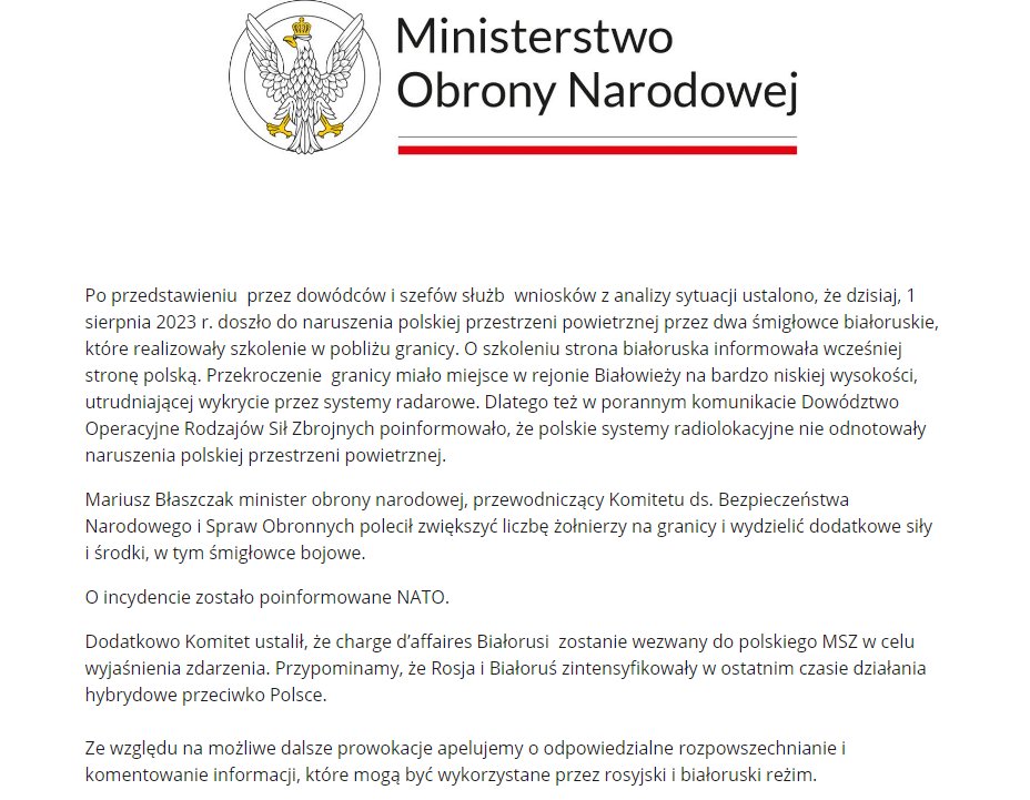 Zmiana stanowiska MON. Doszło do przelotu. Białowieża ma być chroniona przez dodatkowe siły, w tym przez śmigłowce bojowe. Zawiadomiono dowództwo NATO. Do MSZ wezwano BY. To dzięki wszystkim, którzy podali temat i zapewne dzięki pytaniom dziennikarzy. https://t.co/tMSp4gudzagov.pl/web/obrona-nar…