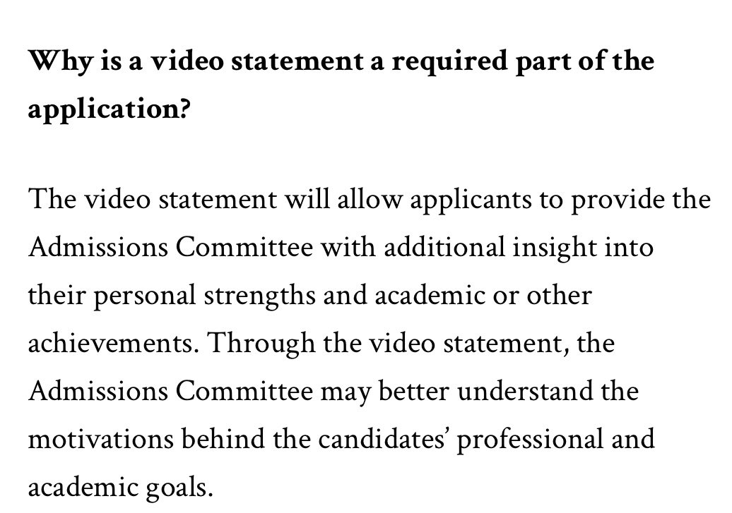 "All applicants will be required to submit a short video, no longer than 90 seconds, addressing a question chosen at random," the school’s admissions page said Monday morning. webcache.googleusercontent.com/search?q=cache…