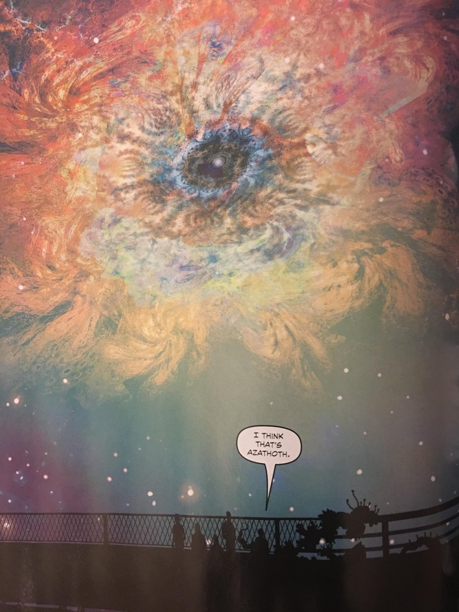 "...que lera no Necronomicon sobre a indiferente entidade Azathoth, que comanda todo o tempo e o espaço de um trono negro no centro do Caos"