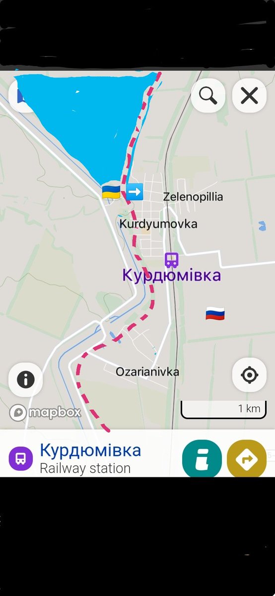 Südflanke. Südlich von Kurdyumivka ist die AFU ca 1km vorgerückt. Bedeutet nachdem die AFU nördlich vorrückückte nun auch südlich. Der Sack zieht sich zu für die letzten VDV Kräfte der Russen.