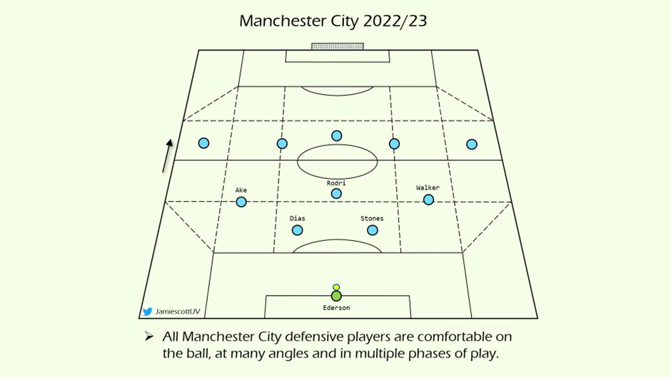 City were able to build in their regular manner. They had an advantage over the front two, and could access most of the players in the progression chain easily, accessing their wingers.