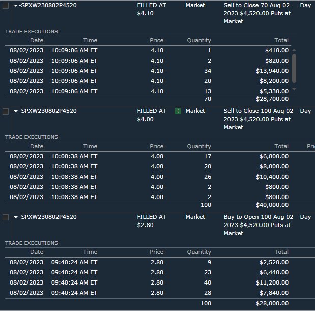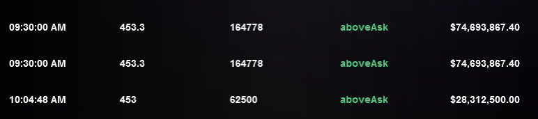 Bonus tape recap: off open this trades were filled as imbalance started to shift to the sell side. These were the top 3 market orders before it dumped from 453 where we had our stops for the day, slightly above that level at 453.30