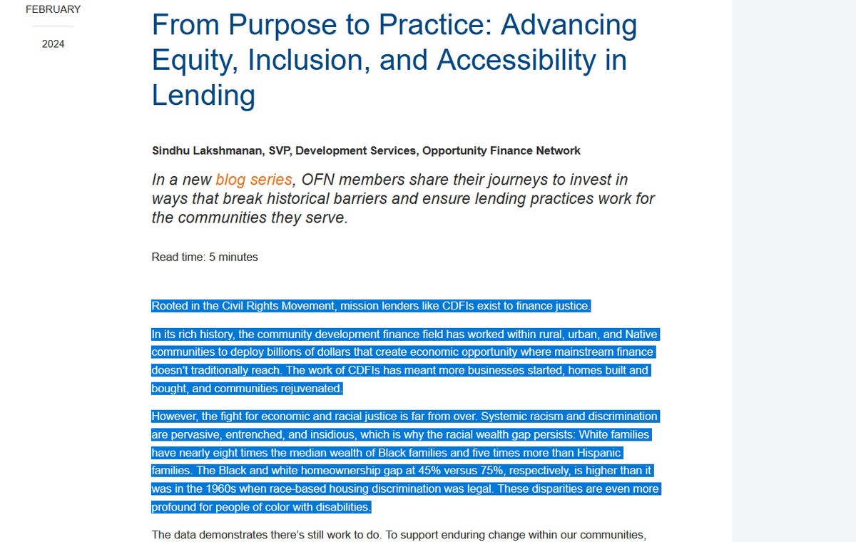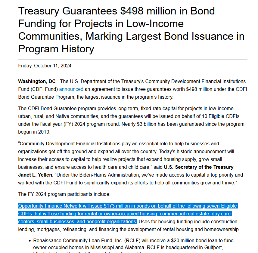 3/ The Opportunity Finance Network also worked to ensure that the Community Development Financial Institutions's (that are funded by the governments CDFI Fund) are bringing in DEI to their networks and business practices.