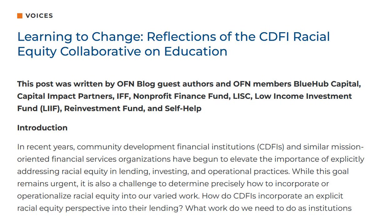 For example, the CDFI ran a post reflecting on how they were going to "operationalize racial equity" into their work.
