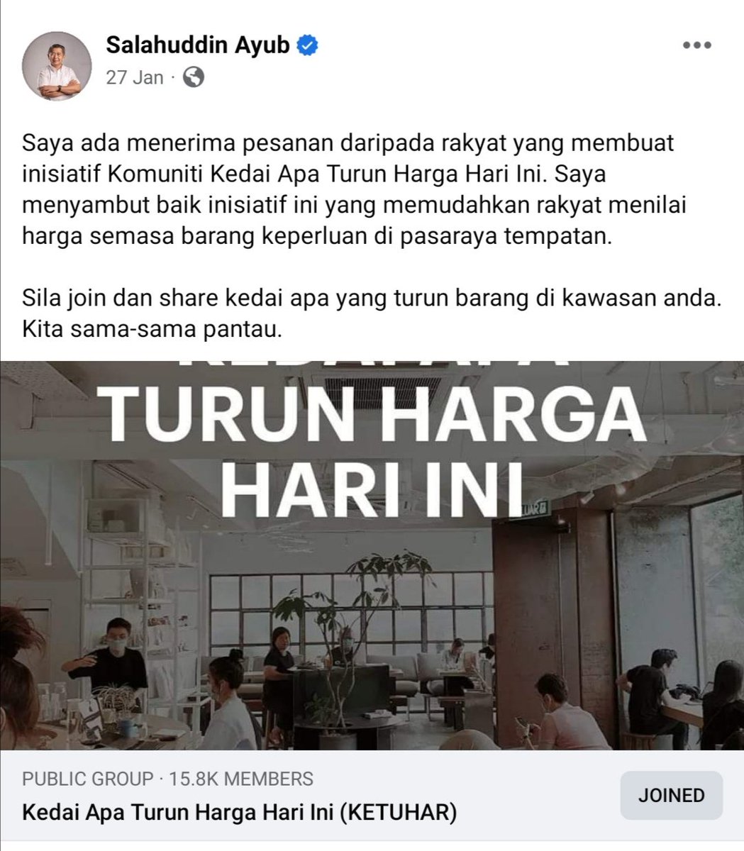 Agak terkilan sbb tak sempat bertemu. Ada permintaan dr beliau untuk bertemu sbb group Kedai Apa Turun Harga Hari Ini (KETUHAR) yg aku asaskan 6 bulan lepas