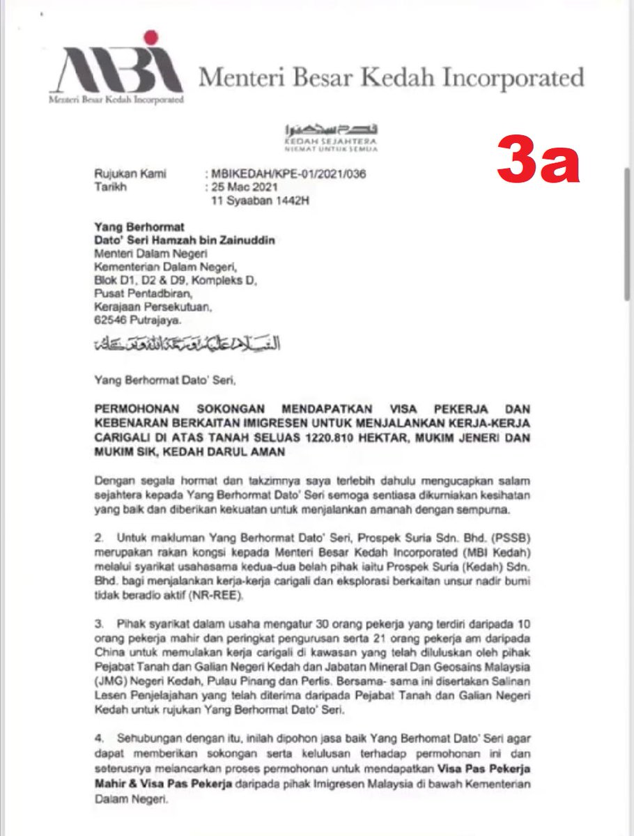 MBI Kedah hantar surat kepada Menteri KDN ketika itu, Hamzah Zainuddin untuk mohon dapatkan visa 30 pekerja dari China.