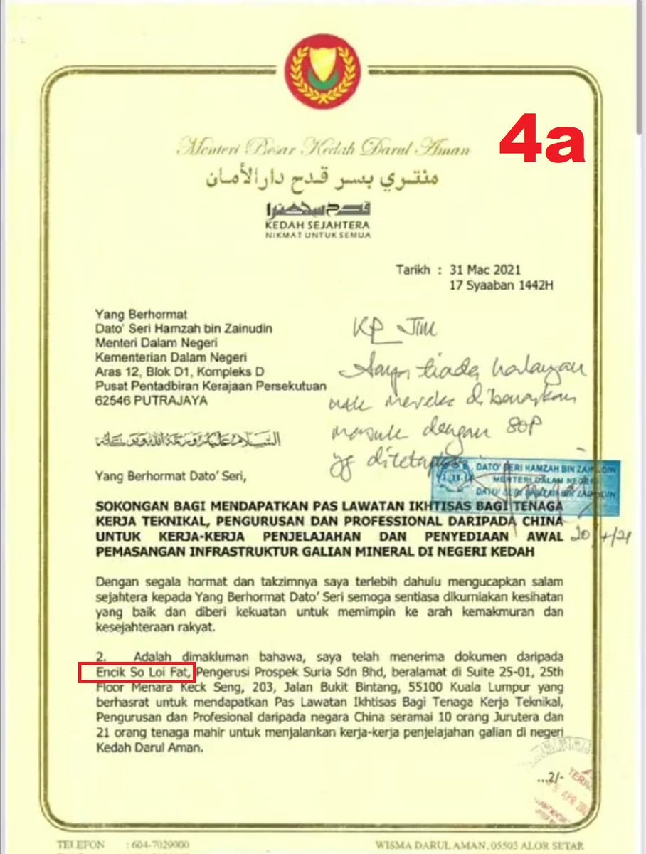 Hamzah pun tulis dengan tangan atas surat 4a ditujukan kepada Ketua Pengarah Imigresen.