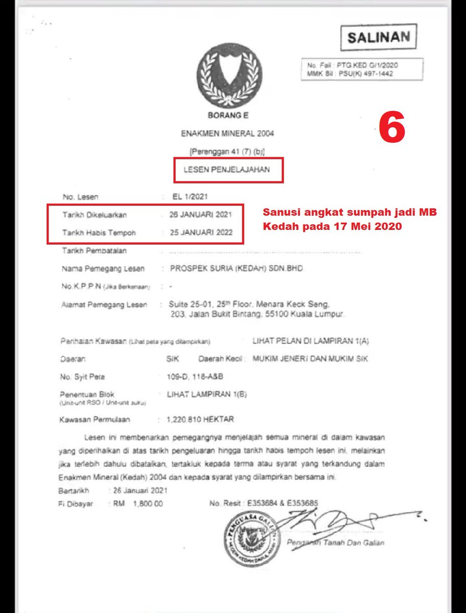 Kemudian kita sampai ke gambar 6. Lesen penjelajahan yang dikeluarkan oleh Pengarah Tanah dan Galian Kedah bertarikh 26 Januari 2021.