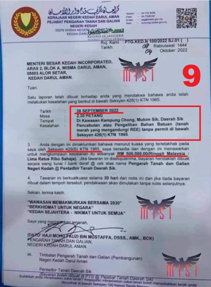 MBI Kedah telah dikenakan kompaun oleh Pengarah Tanah dan Galian Kedah, di bawah Seksyen 429B yang sama, pada tarikh yang sama 26 September 2022, dan nilai kompaun pun sama RM500,000!
