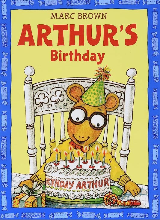 The book tells the story of Arthur, a bespectacled aardvark in the 3rd Grade, whose birthday party is scheduled at the same time as his classmate, a monkey named Muffy