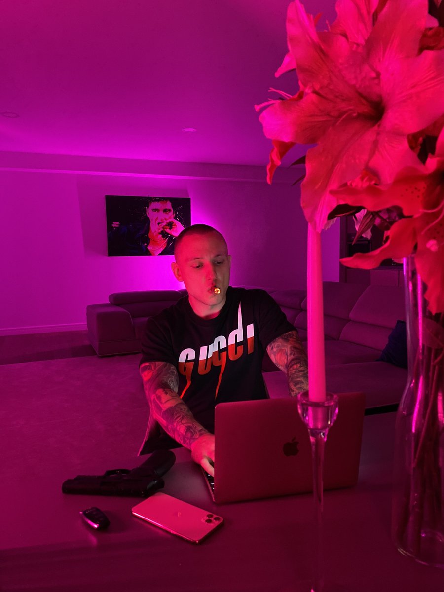 He has a huge obsession with ScarFace, and he also thought it would be a good idea to connect himself even more clearly to the Tates, oh and he also seems to know one of the Fresh and Fit guys.