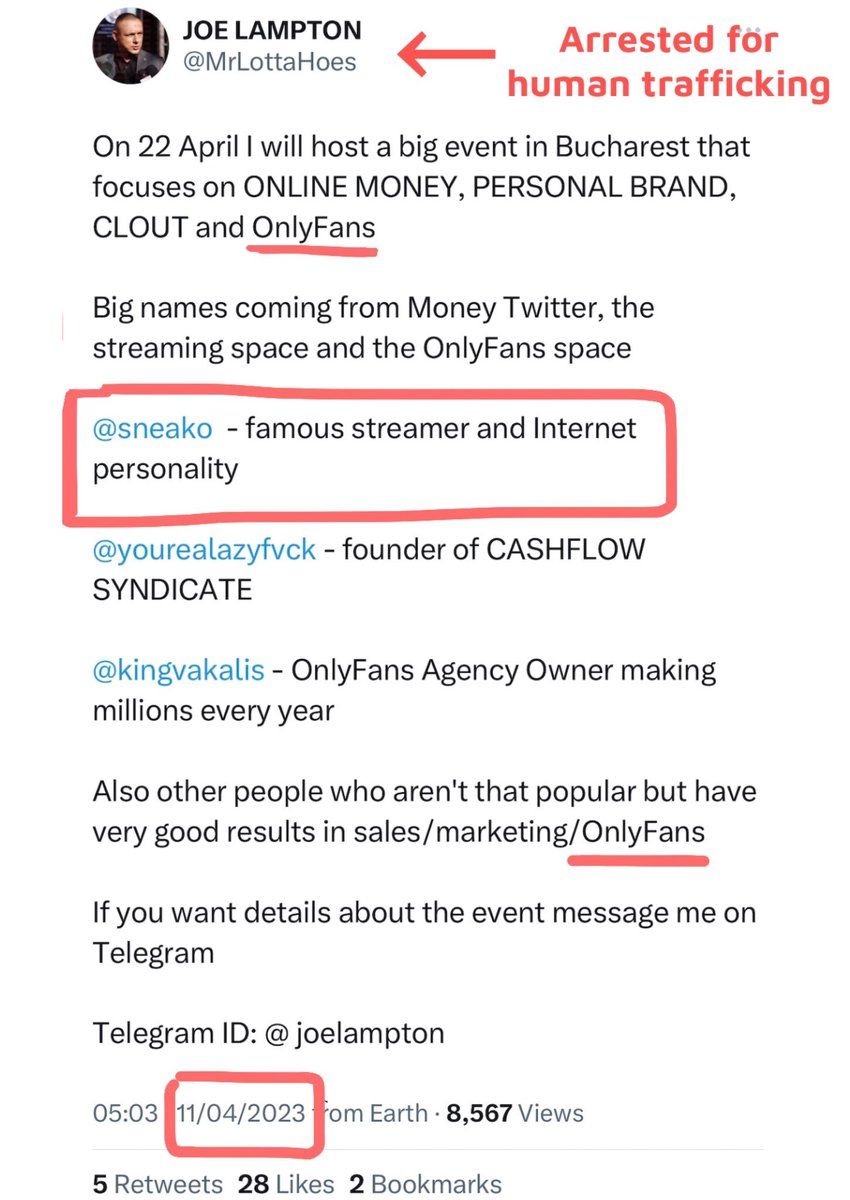 On some level the world needs to stop calling these people losers and jokes, they are not, we don't even know how long their spend in jail, Lampton being short doesn't stop him from being a monster, and Sneako being cuck doesn't mean he's wasn't taking money to promote him.