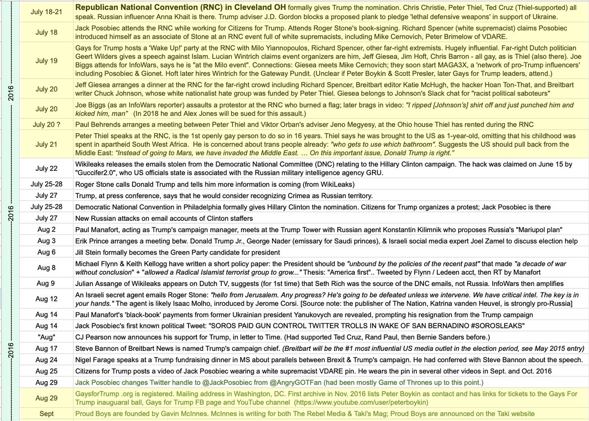 At the 2016 RNC, just before the Proud Boys were announced, Peter Thiel's protege / employee Jeff Giesea arranged two events that birthed the alt-right: a "Gays for Trump" party and a dinner for Richard Spencer and other white nationalists. Jack Posobiec got his start here. 4/