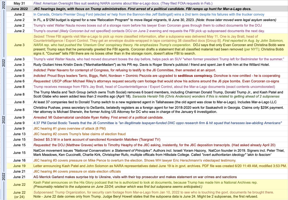 Here's a chunk of the timeline, in yesterday's thread about John Solomon, the other appointed NARA rep. Kash Patel was spinning on 22nd, when Trump says he got a subpoena. John Solomon was the first to report on the search itself. 3/