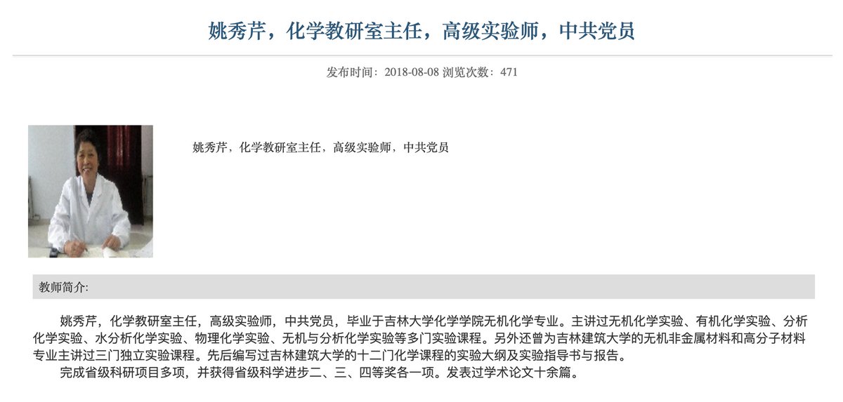 27- Chem professor & CCP member, Yao Xiuqin, at Changchun University of Architecture & Civil Engineering specializes in research on chemical oxygen demand & waste water analysis related to the products like urinalysis tests & pregnancy tests shipped to UMI / PBI