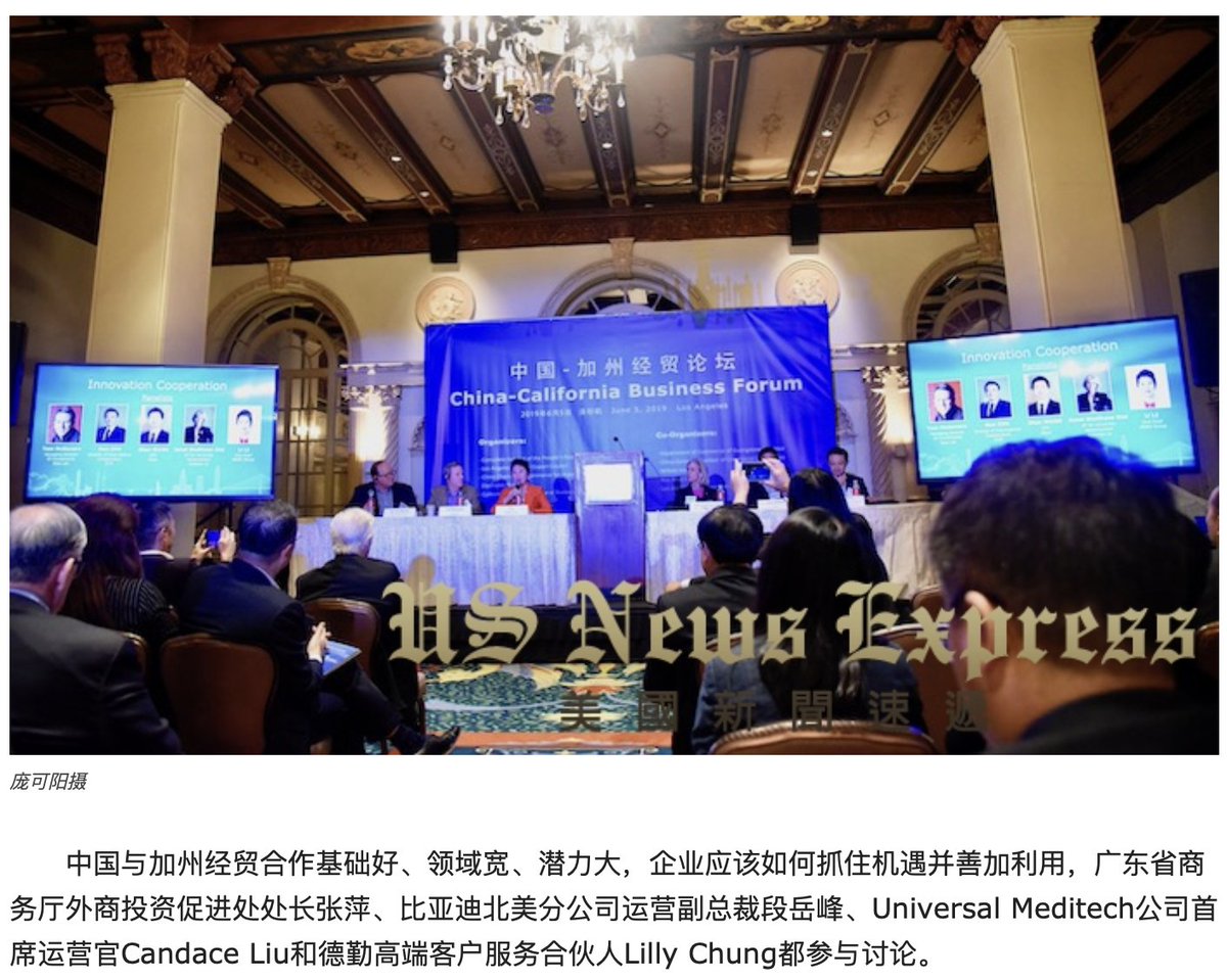 17- FDA recall report for Universal Meditech lists Yan Wang 18- June 2019, Candace Liu, UMI’s chief operating officer, participated in discussion at the China-California Business Forum in L.A. w/ reps from the Guangdong province Department of Commerce, BYD N. America & Deloitte