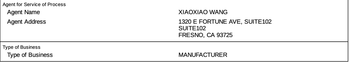 24- UMI / PBI representative Wang Xiaoxiao has been listed at either 404 Wanggezhuang Street, Laoshan District, Qingdao City, Shandong Province, China or 1320 E FORTUNE AVE, SUITE 102 FRESNO, CA 93725 in business filings