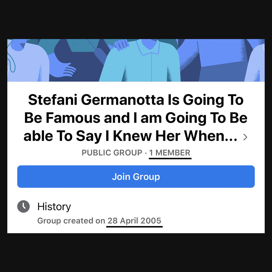 But not everyone at NYU shared the same views: we found another Facebook group made in April 2005 titled “Stefani Germanotta IS going to be famous and I am going to be able to say I knew her.”