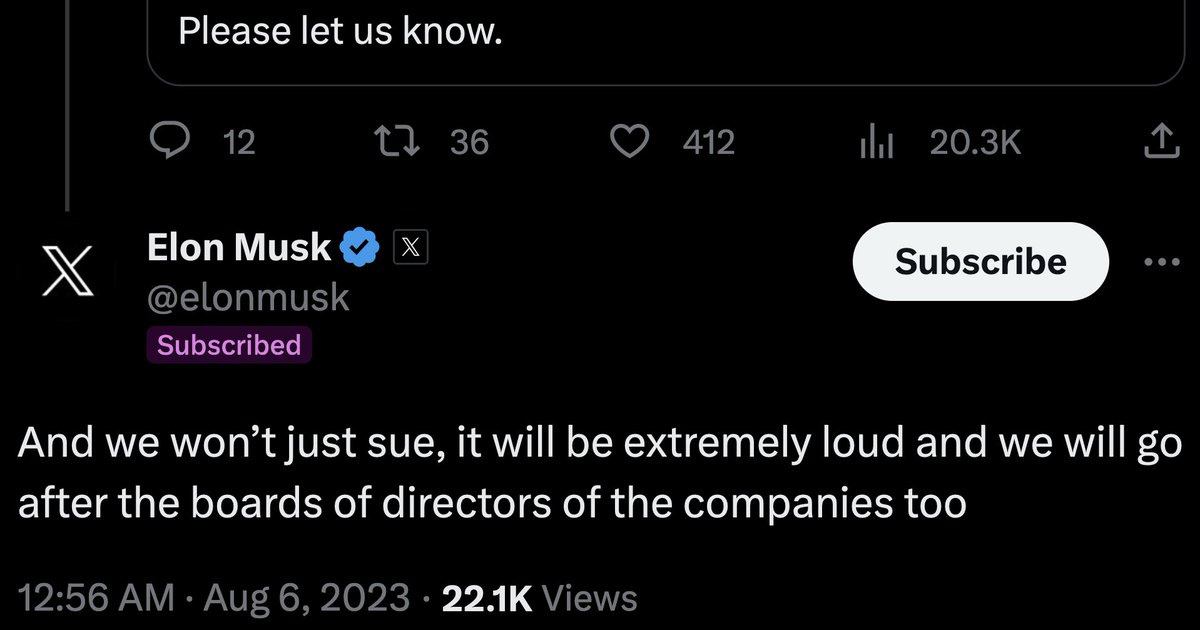 "And we won’t just sue, it will be extremely loud and we will go after the boards of directors of the companies too"