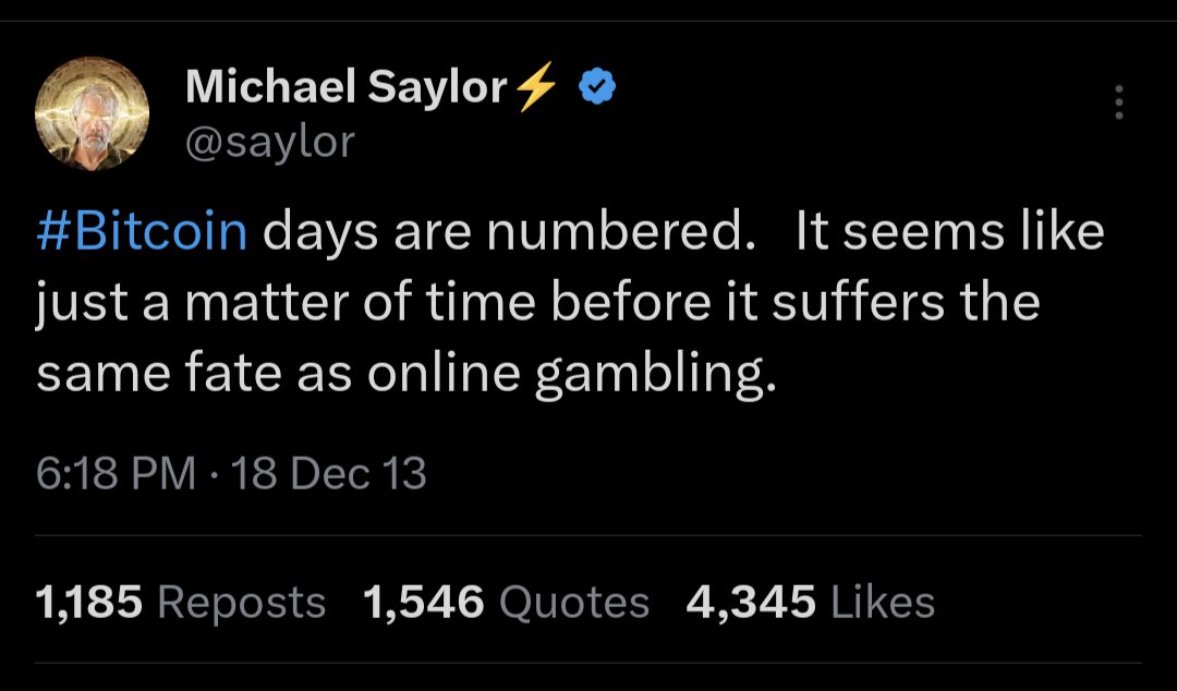 Saylor's company hit a huge problem in March 2020, inflation, AKA currency debasement, AKA legal counterfeiting. He had a positive cash flowing business but it was having trouble keeping up with its competitors, like Oracle, and the hidden, INSIDIOUS tax called INFLATION. 16/