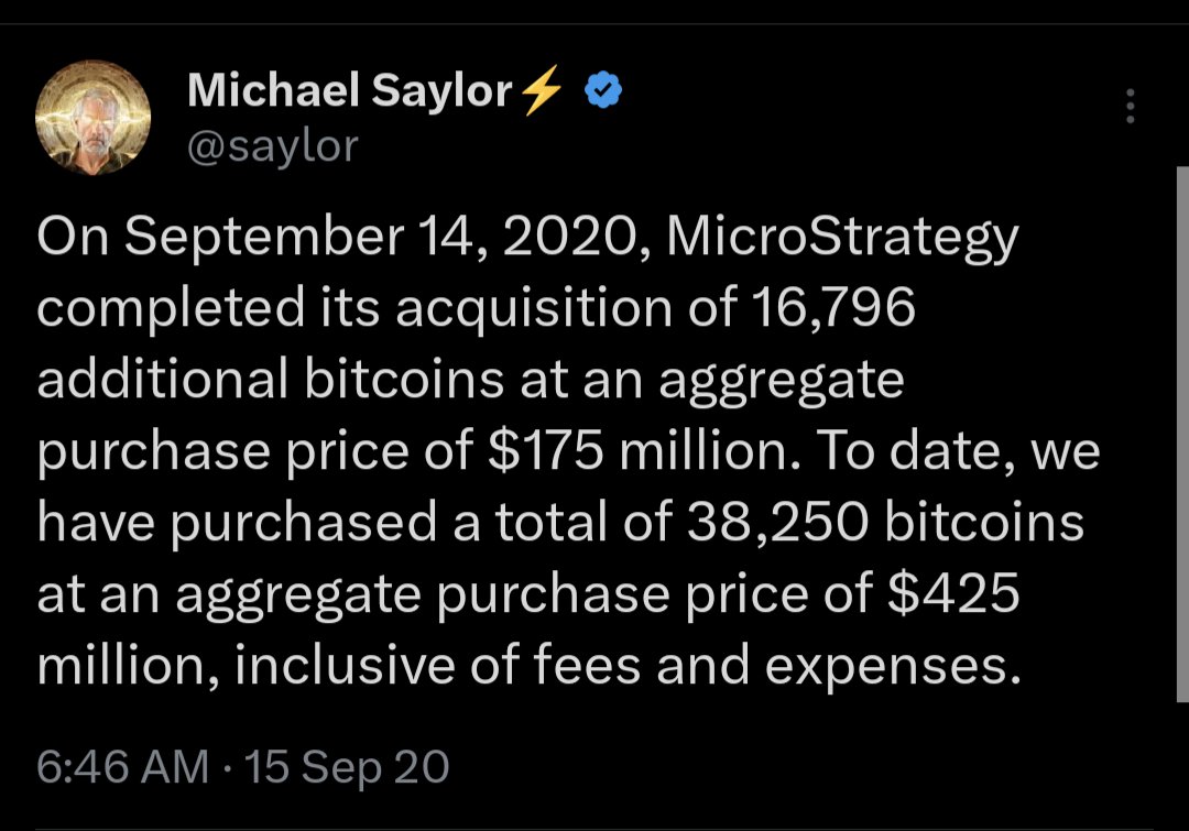 Saylor's biggest problem was that he had $500,000.000 in his company's Treasury Reserve and it was losing purchasing power at a rate of 30%+ because the Federal Government decided to print 30%+ more currency in 2020 to keep the COVID economy from collapsing. 17/