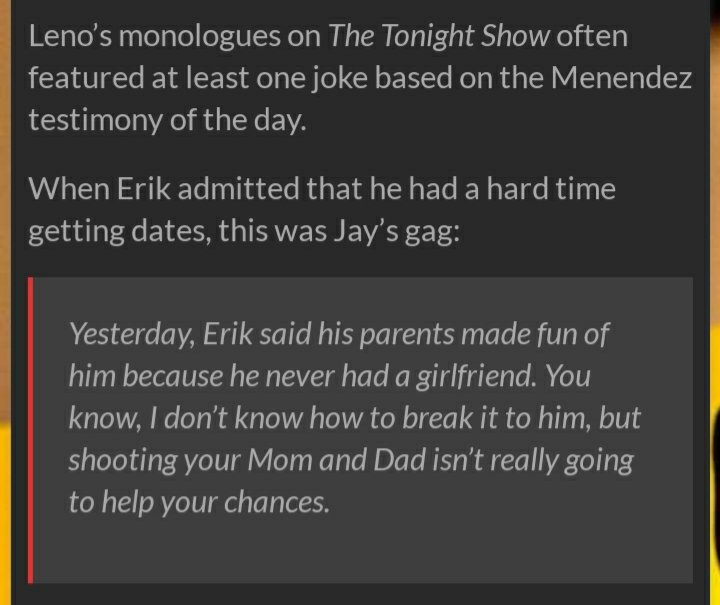 Jay Leno was obsessed with the Menendez trial. He often used it as a source of jokes for his monologues on The Tonight Show.
