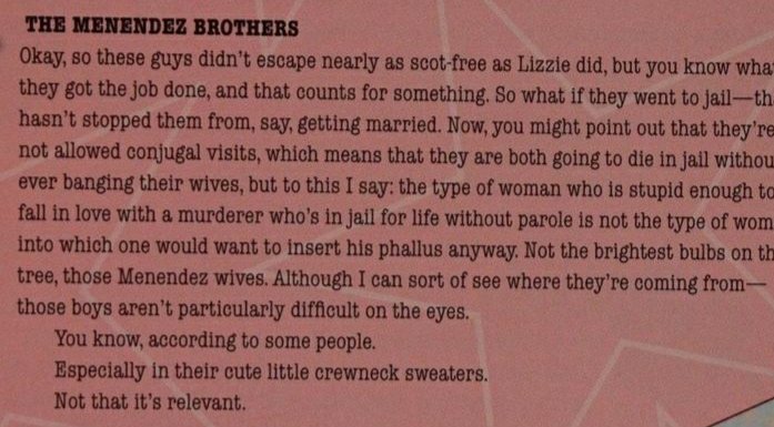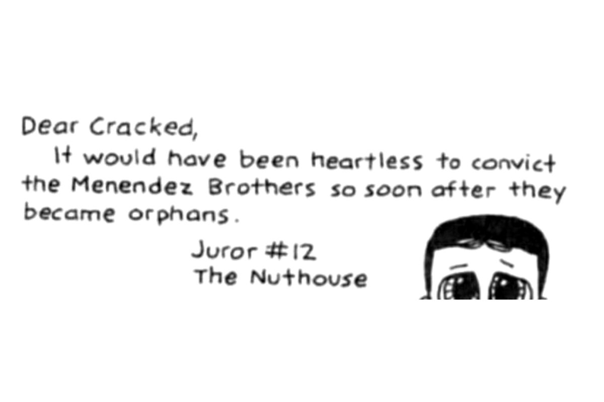 After the Menendez trial became a media circus, the case attracted public attention and criticism. A popular joke about the case was that the Menendez brothers asked for leniency because they were orphans.