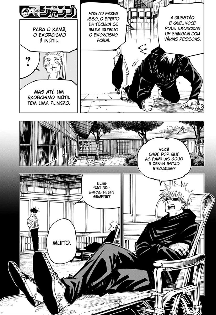 O Gojo inclusive disse para o Megumi que as famílias Gojo e Zenin são brigadas e no passado o líder do clã Gojo que era portador dos 6 olhos e do ilimitado e o líder dos zenin lutaram e ambos morreram