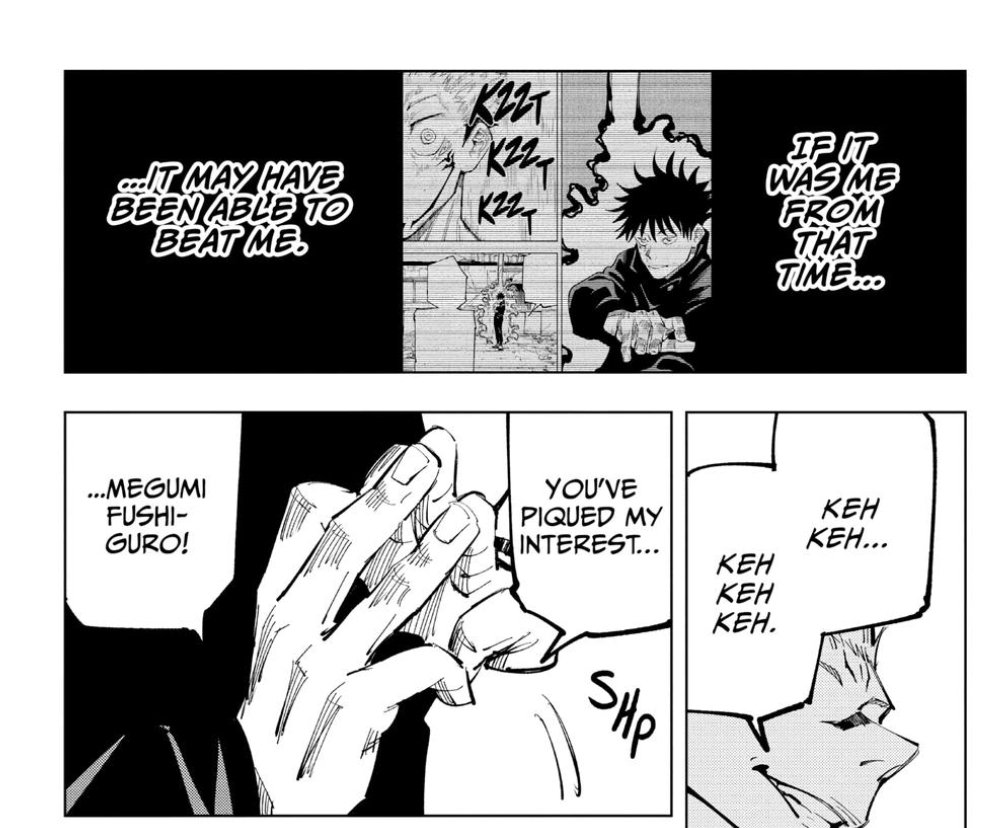 Uma coisa interessante dessa luta é que ela serve pra mostrar como o Sukuna lutaria no corpo do megumi, além de servir para não falarem que Gege tirou do rabo algumas habilidades novas que o Sukuna conseguiu com o Megumi