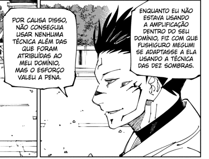 Logo, não tem como o Sukuna em si se adaptar aos feitiços do Gojo nem passar o mugen