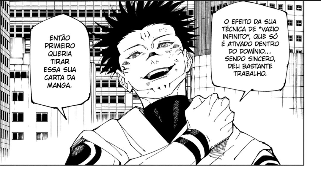 O Sukuna sabe de tudo isso, e sabe que é muito difícil lidar com as técnicas do Gojo