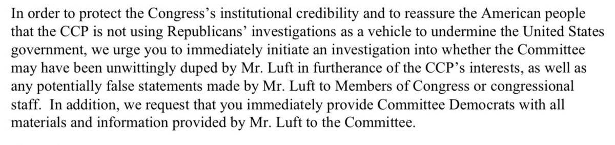 BREAKING: THREAD: Reps Goldman and Raskin have sent a letter to Rep Comer DEMANDING he open an investigation into whether republicans on the Oversight committee have been DUPED by their “whistleblower” Gal Luft in furtherance of China’s interests. 1/