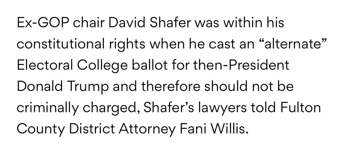 BREAKING: David Shafer - who is totally gonna get indicted by Fani Willis - has his lawyers draft a 14 page letter to the DA arguing that the 1st and 14th amendment protect his right to forge documents and defraud voters. 1/ ajc.com/politics/forme…