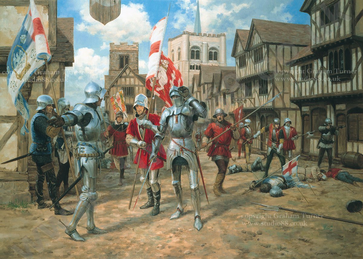 Yorkist forces would move forward and tense clashes began in the narrow streets, as a result more Lancaster men rushed to defend the city.