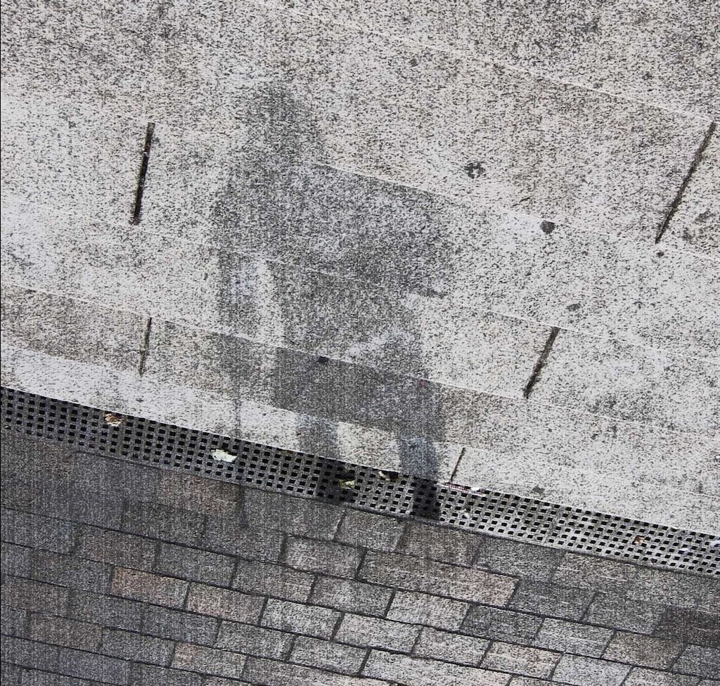Qualquer corpo que estivesse no caminho da explosão impedia o branqueamento da área sobre a qual projetava sua sombra, deixando assim a sua silhueta gravada no concreto — fossem bicicletas, escadas ou seres humanos.